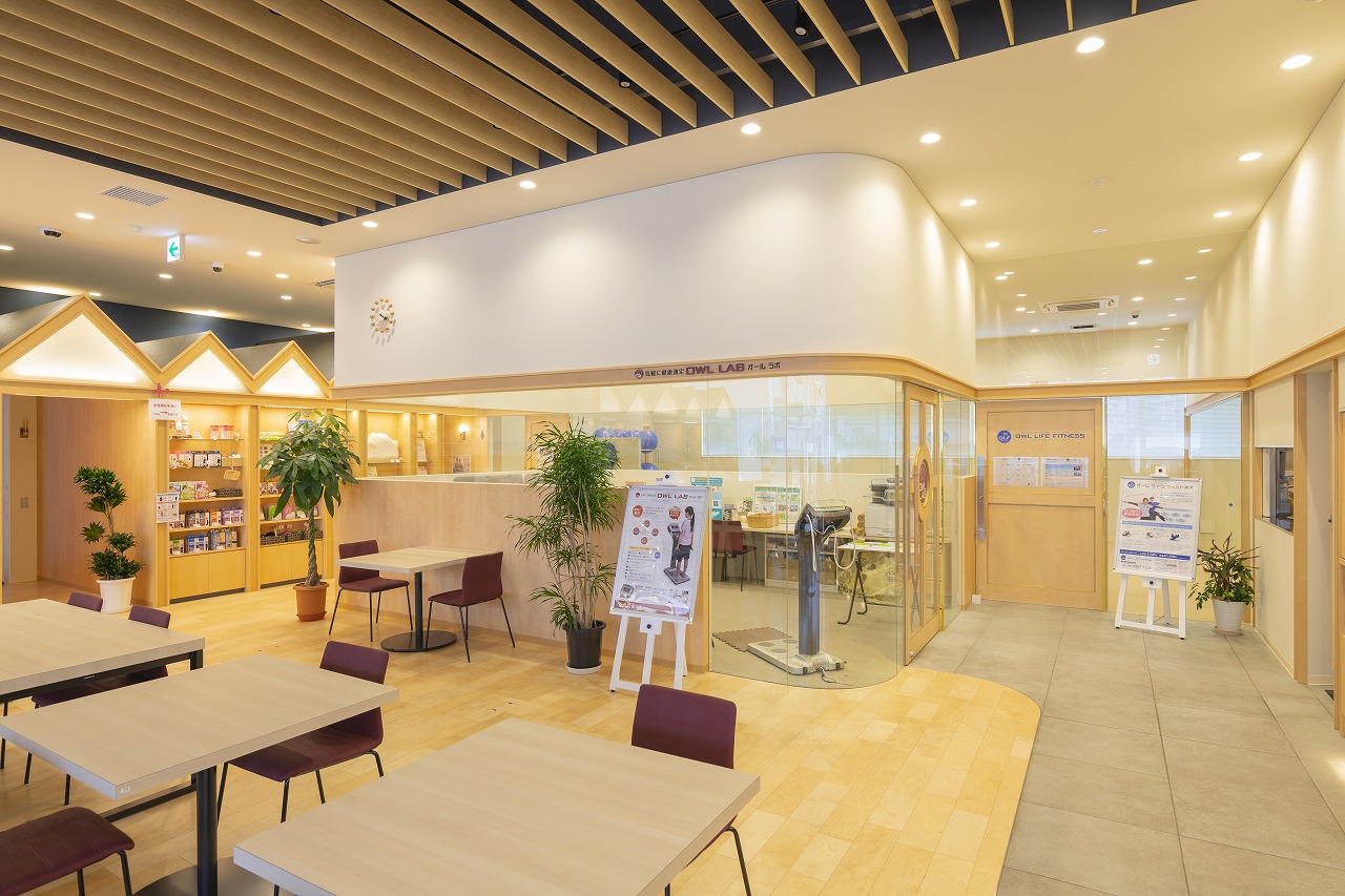 オールカフェ×タニタカフェと同じフロアには、11種類のプロ仕様の健康チェック機器を取り揃えた「オールラボ」や、幅広い年齢層の方に運動を楽しんでいただけるプログラムが用意された「オールライフフィットネス」も併設されてます。