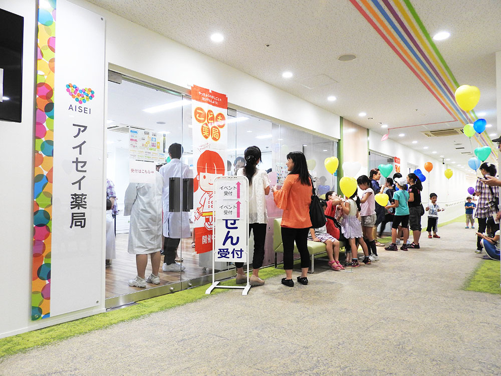 アイセイ薬局では、地域のコミュニティーを活性化するためのさまざまなイベントも薬局店舗で行っています。子どもの薬剤師職業体験プログラム「こども薬局」もその一つです。「下総中山クリニックファーム」にあるアイセイ薬局 下総中山店でも、過去に「こども薬局」を開催。多くの地域の皆さまが参加され、大盛況となったそうです。「こども薬局」は薬剤師が調剤室の中でどのようなことをしているかを楽しみながら体験できるプログラムとのこと。医療や医薬品の重要性を学び、子どもたちに薬局、薬剤師の仕事内容や存在意義などを深く理解してもらうことを目的とされているそうです。