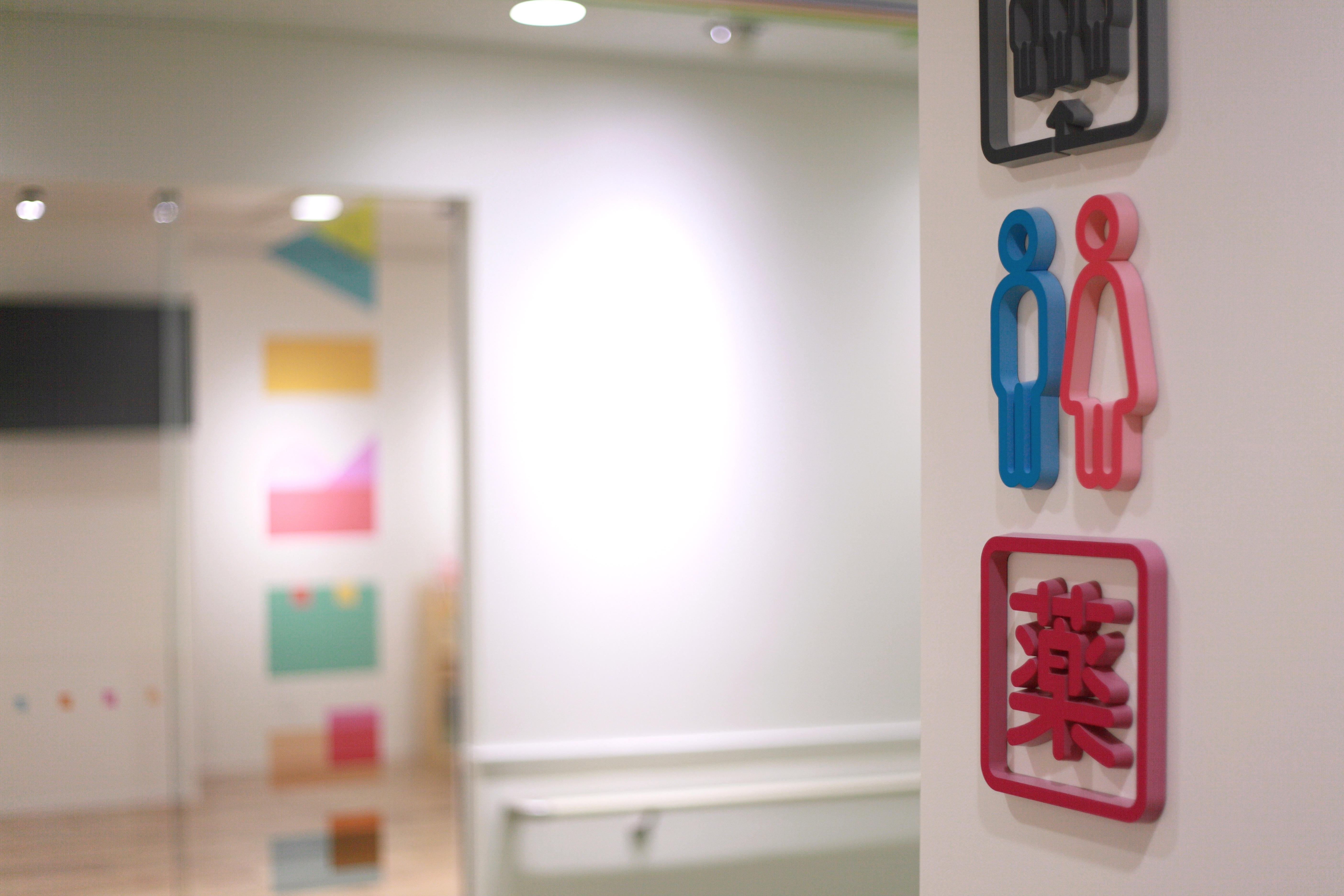 わかりやすいサインの展開や、おむつ替えスペース、子ども用トイレ、ベビーキープの設置など、既存の共有部分も、ユニバーサルデザインに準拠してどなたでも使いやすい空間となっています。