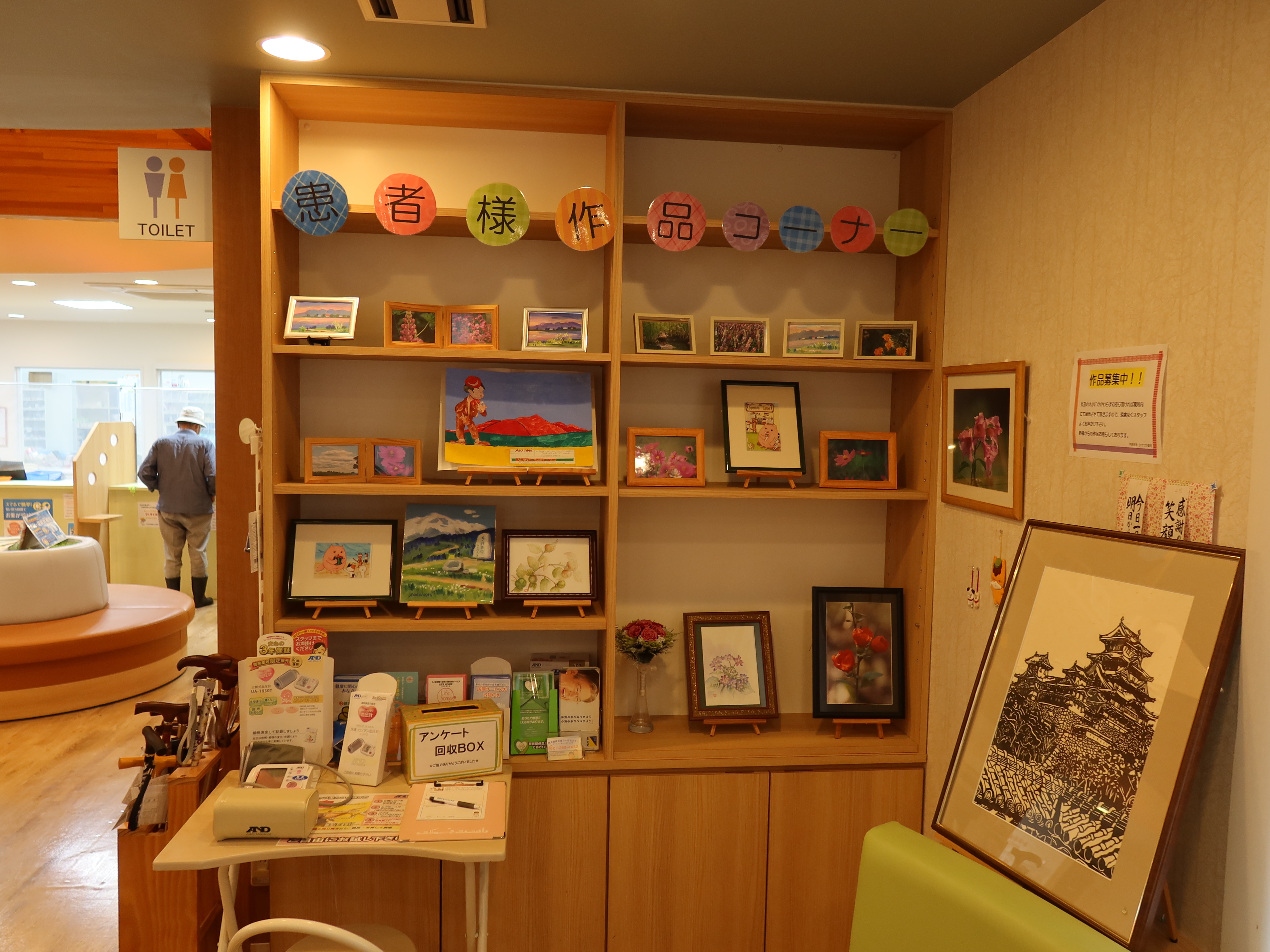 患者様から頂いた様々な作品コーナー。地域密着ならではの、患者様との近い距離を感じますね。