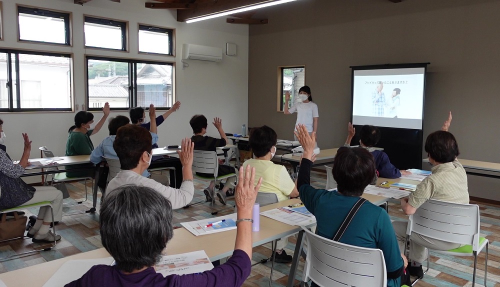 健康教室では、「フレイル」とはそもそも何かを説明することでご参加いただいた方に理解を深めて頂きます。
