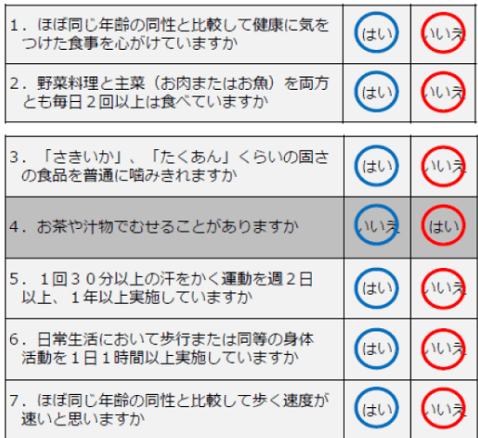 今城 フレイル予防の重要性は自身のフレイル度を知ることで理解できます。そのため講演では、東京大学高齢社会総合研究機構の飯島勝矢教授らが考案した筋肉量が把握できる「指輪っかテスト」とフレイルの度合いが分かる「イレブンチェック」という簡単なセルフチェックを行っていただき、まずは自身のフレイル度を自覚していただくところから始めています。その上で、フレイル対策の3つの柱である「栄養」「運動」「社会参加」の大切さ、必要性を訴えています。