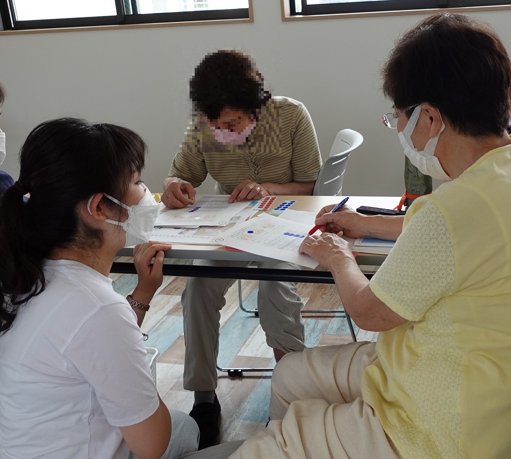 今城 倉敷店で2021年10月からスタートしたフレイル予防のための「健康教室」は、薬局が果たすべき健康サポート機能の一環として始めました。地域住民の介護・健康などの窓口となる地域包括支援センターからの依頼を受け、各地域のサロンに赴く形で実施しています。