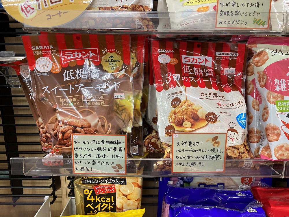 若園 ポップの作成には工夫を凝らしており、栄養士がおすすめしている旨と特徴を記載した商品は特に売れていますね。具体的な商品だと低糖質低カロリー系の商品などが人気です。