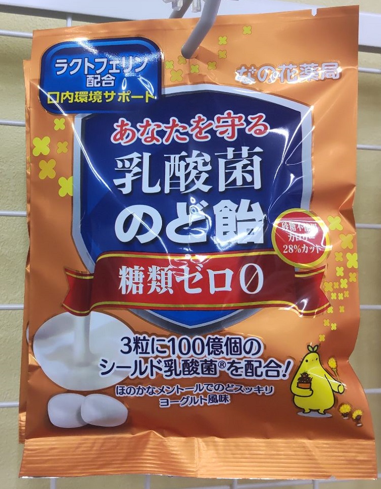 他には、なの花薬局のプライベートブランド商品ののど飴も好評を頂いています。弊社のキャラクター「Na-No」がデザインされていて、可愛らしいパッケージになっています。