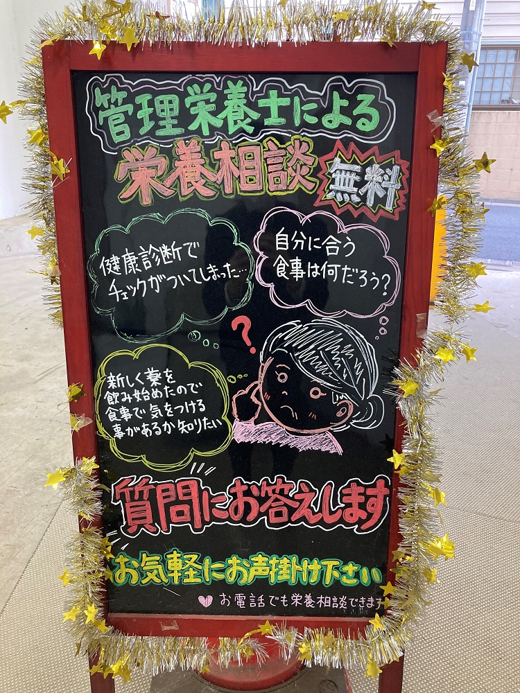薬局内の栄養相談の案内ポスターをご覧になった患者さまから、声をかけて頂くこともありました。