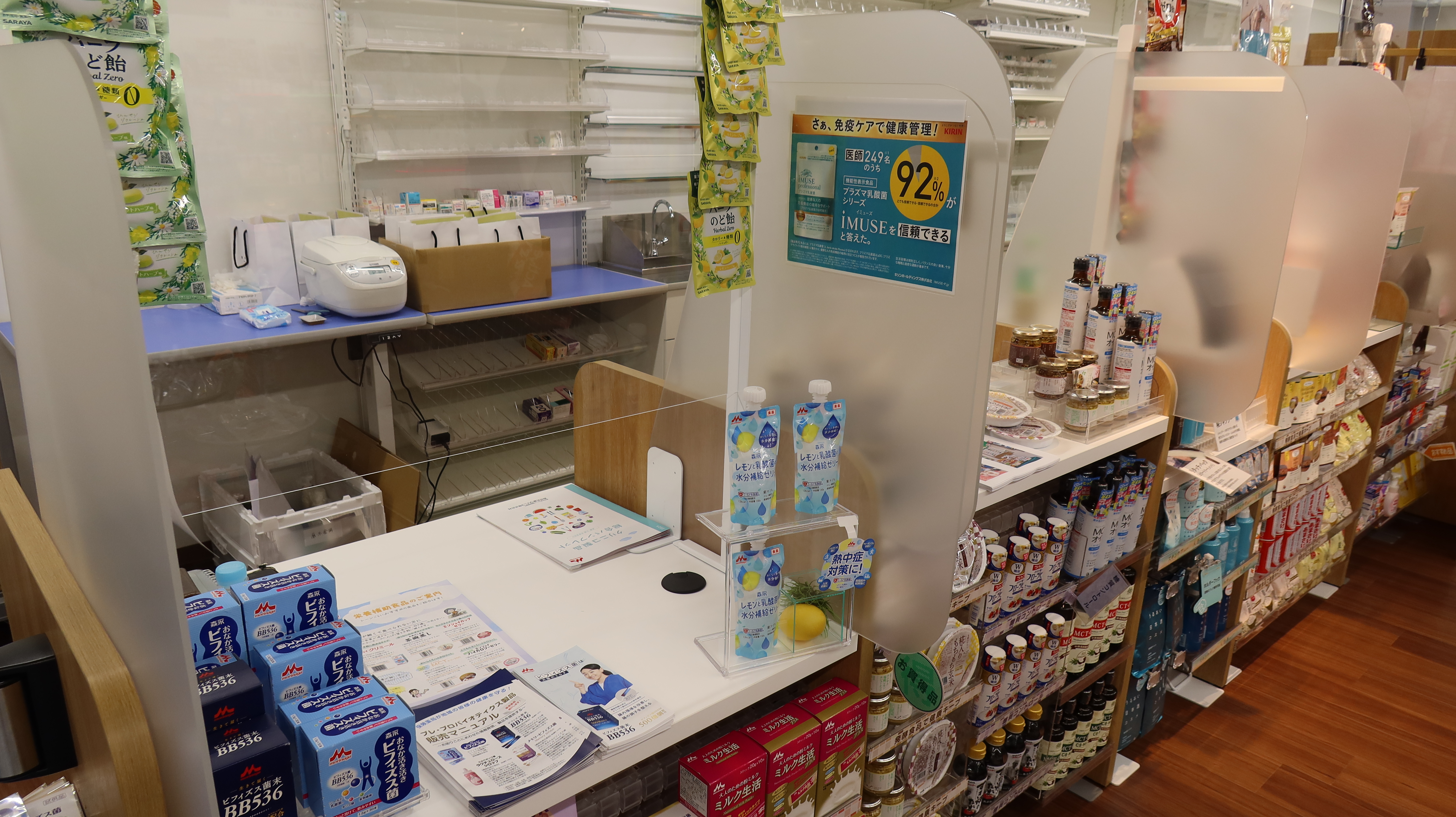 薬局内で売り場のスペースを作り上げる際には、空いているスペースが売り場として目をつけられやすいですが、実際に対面するカウンターや相談の対応をする場所の近くに売り場を設けて頂くことを検討して頂きたいですね。